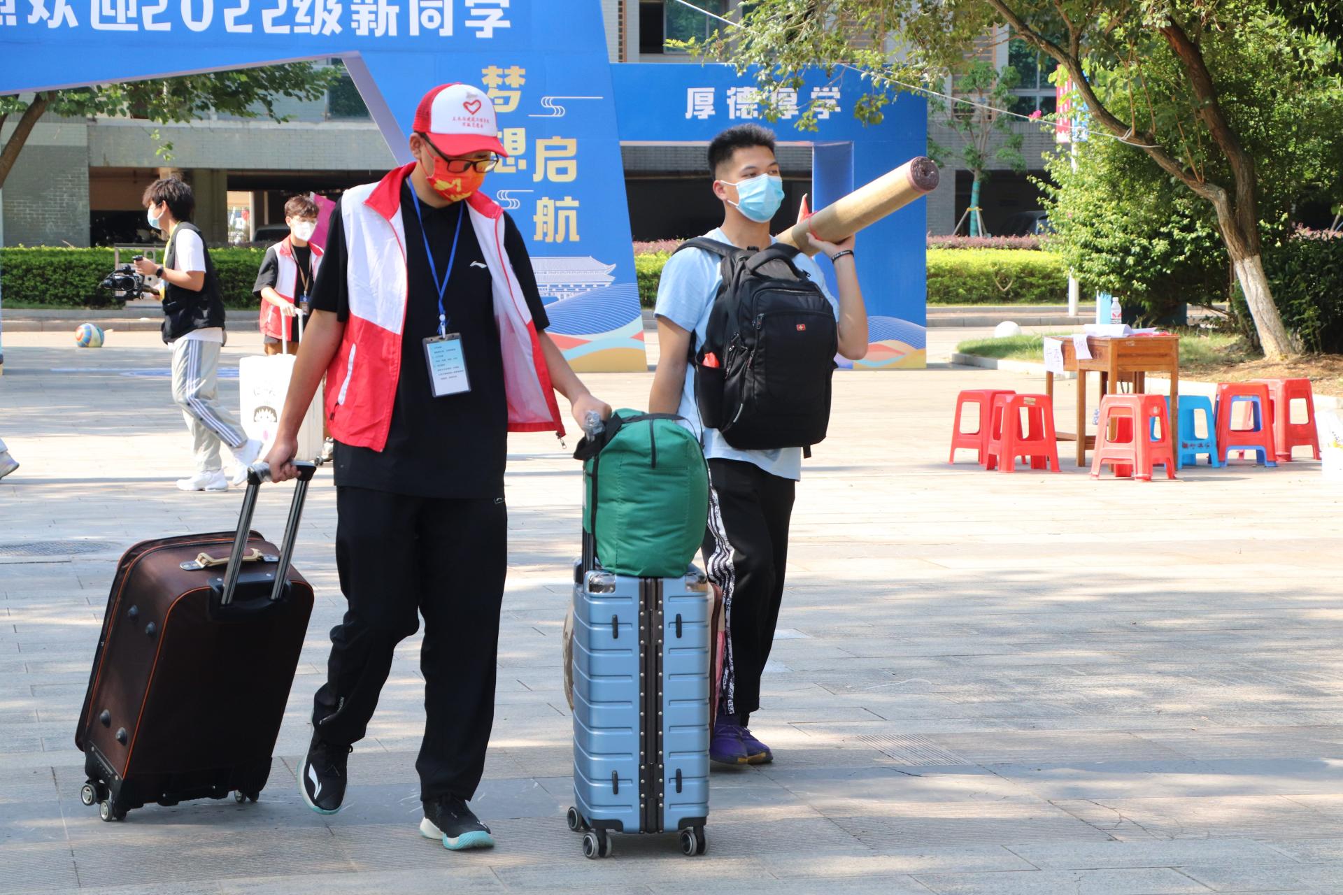 金秋九月,来自全国各地的求学之子,共聚南院。9月3日,是我校2022级本科新生报到的日子,整个校园洋溢着青春朝阳的气息,报到的新生脸上挂满笑容。为了积极配合南宁市疫情防控的政策,让所有学生在一个安全、健康的环境中畅游知识的海洋,南宁学院在南大门处设置了四个核酸检测通道,要求新生进行进校后的第一次核酸检测,土木与建筑工程学院在敷文园D设立新生报到处开展迎新工作。为了让新生认识土建学院、熟悉土建学院,土建学院还在门口放置了两个展板,分别介绍学院多年来的建设情况以及暑期大学生“三下乡”活动成果。大本营设置有报到通道、行李寄存处、保险办理处、学业咨询处以及绿色通道。大本营区域的合理划分有效的压缩了新生办理入学登记的时间也减轻了老师以及志愿者的工作。