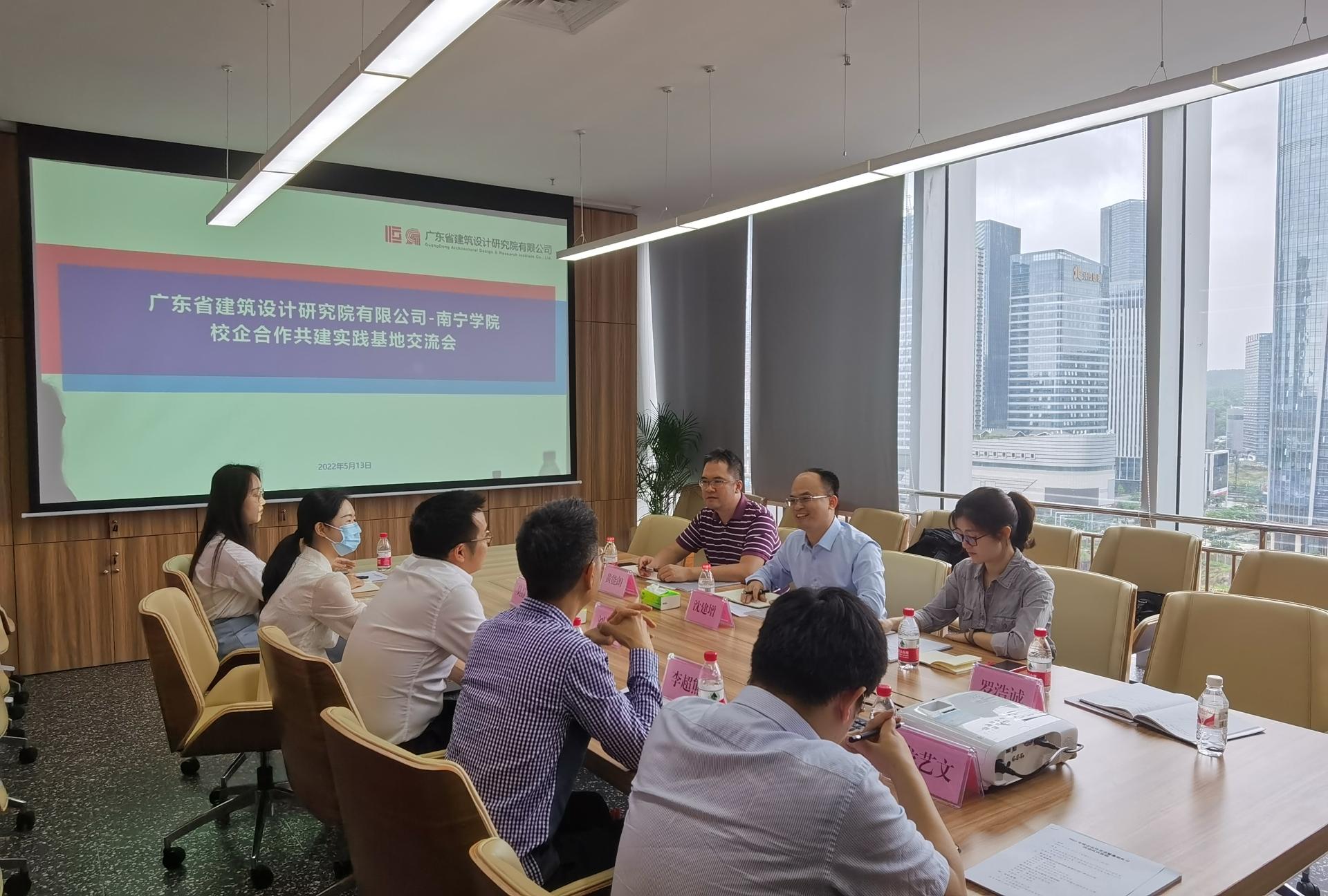 5月13日上午,土木与建筑工程学院副院长沈建增率建筑学教研室主任黄能朗、专任教师英姿、罗浩诚赴广东省建筑设计研究院有限公司广西分公司(以下简称分公司)参加校企合作交流会。