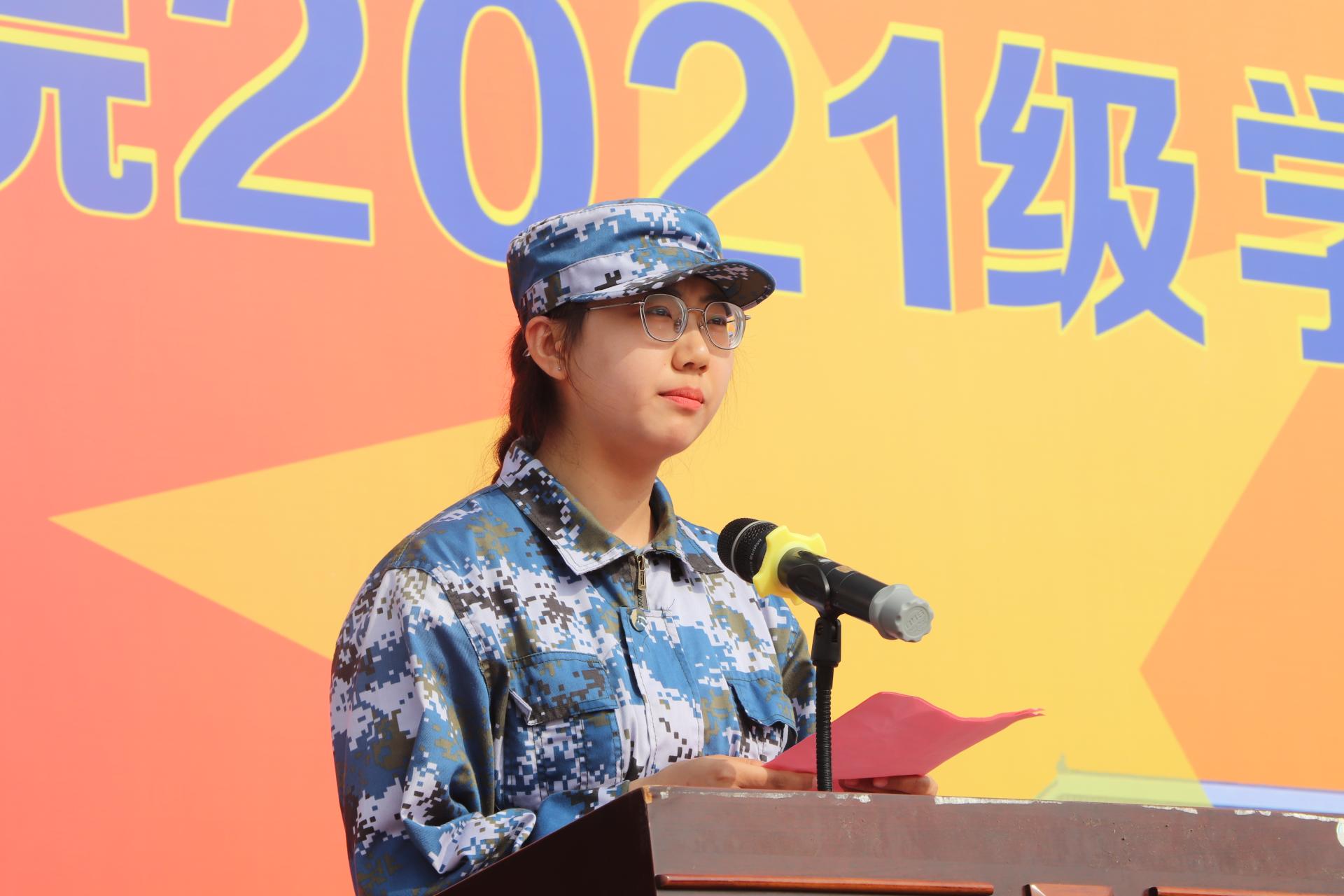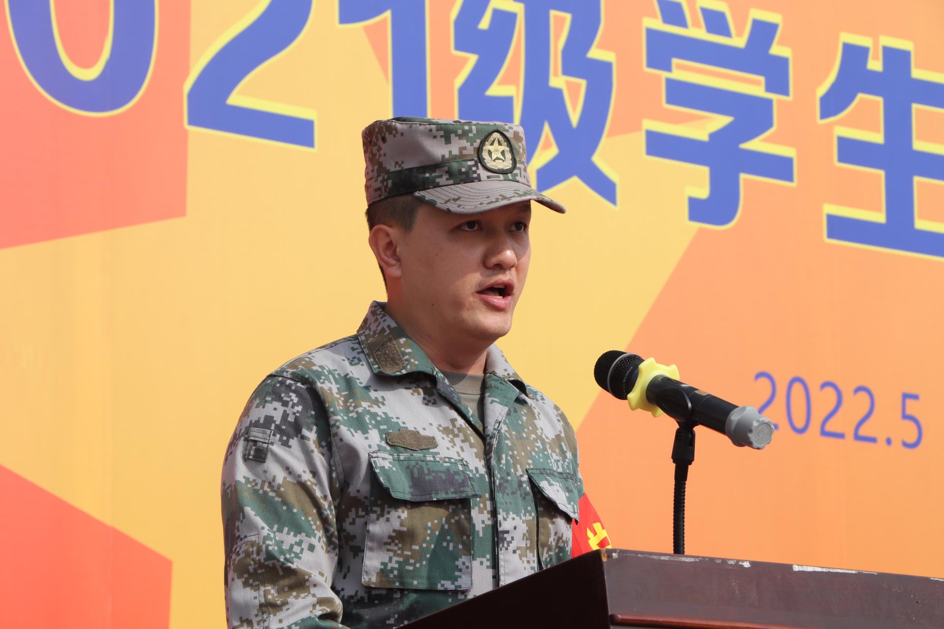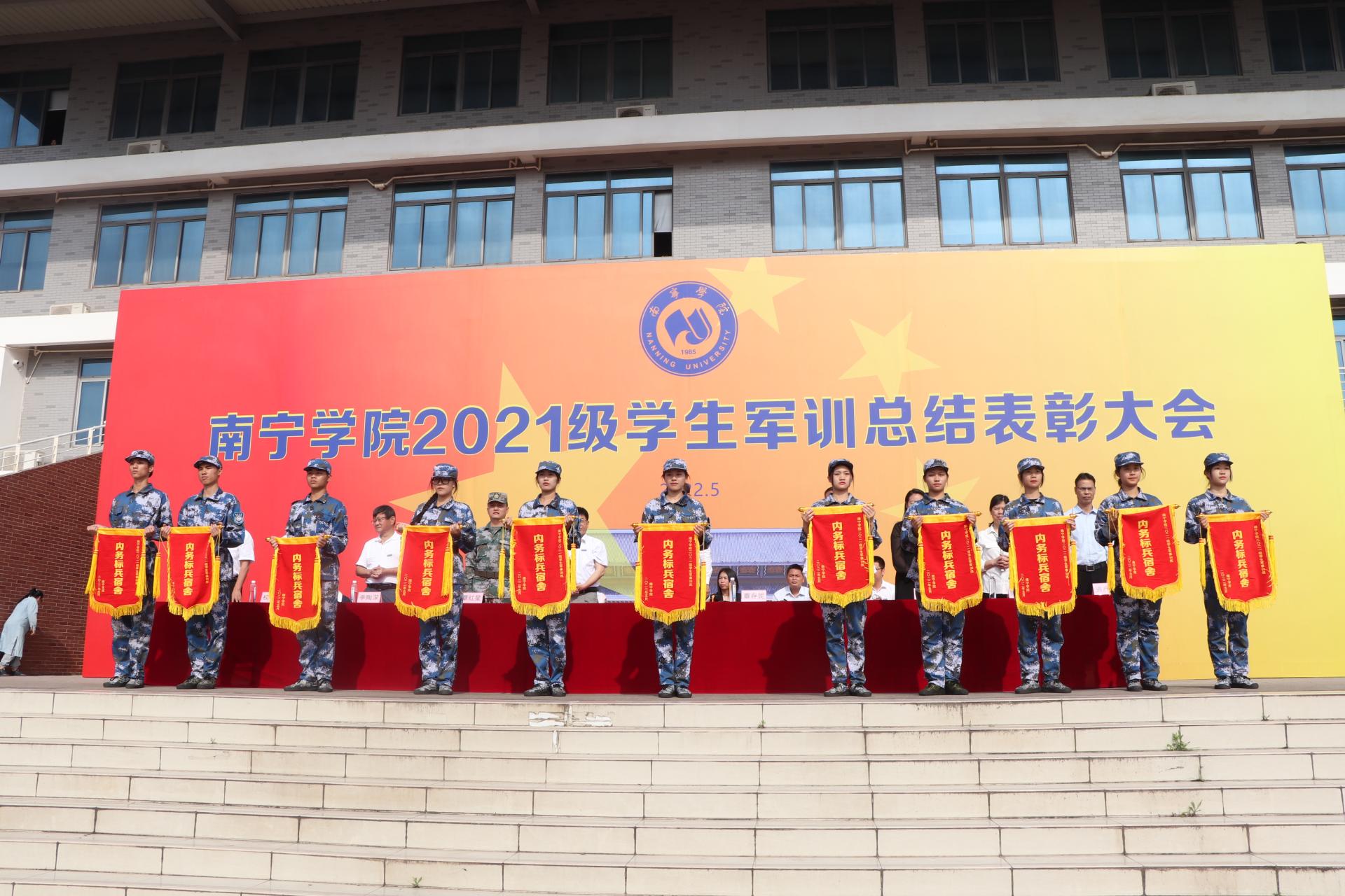大会分为九项议程,首先全体人员进行升国旗、奏唱国歌和升校旗、奏唱校歌。紧接着主持人介绍出席大会的领导和嘉宾。随后,同学们迈着铿锵有力的步伐、喊着整齐的口号接受了领导们的集体检阅。紧接着,军训学员们进行了分列式和军训主题表演,阳刚的军体棍,灵活的匕首操,展现了震撼的视觉盛宴。激动人心的表演结束后,覃存民副书记对军训表演进行点评,并宣读表彰决定,领导为先进集体及个人颁奖。完成颁奖仪式后,军训学生代表石梓萌总结了同学们军训生活以来的付出,表示因军训形成了爱国热情、严于律己的组织观念和艰苦奋斗的作风精神,倡导同学们践行“请党放心,强国有我”的时代宣言。紧接着刘彪书记与承办单位领导覃红星也对军训进行了点评与总结,并肯定了同学们的军训成果,他们勉励同学们将军训生活的优良作风继续发扬在以后的学习生活上,做时代长征的接班人,为实现中华民族伟大复兴奋斗。最后,21级新生们按军训各营与领导进行合影留念。