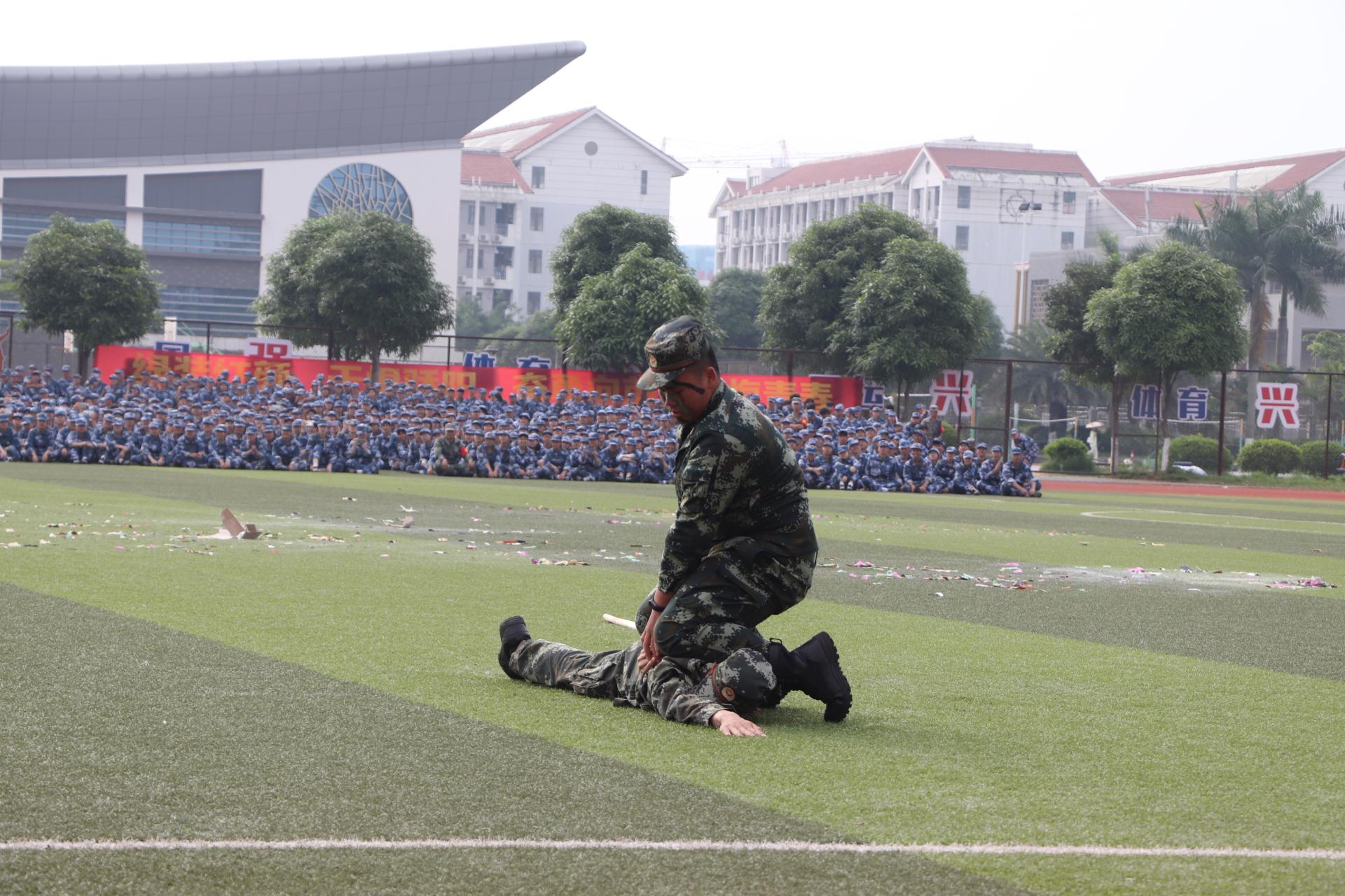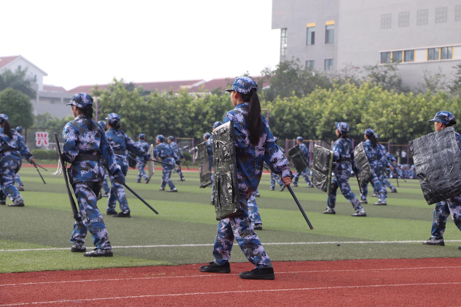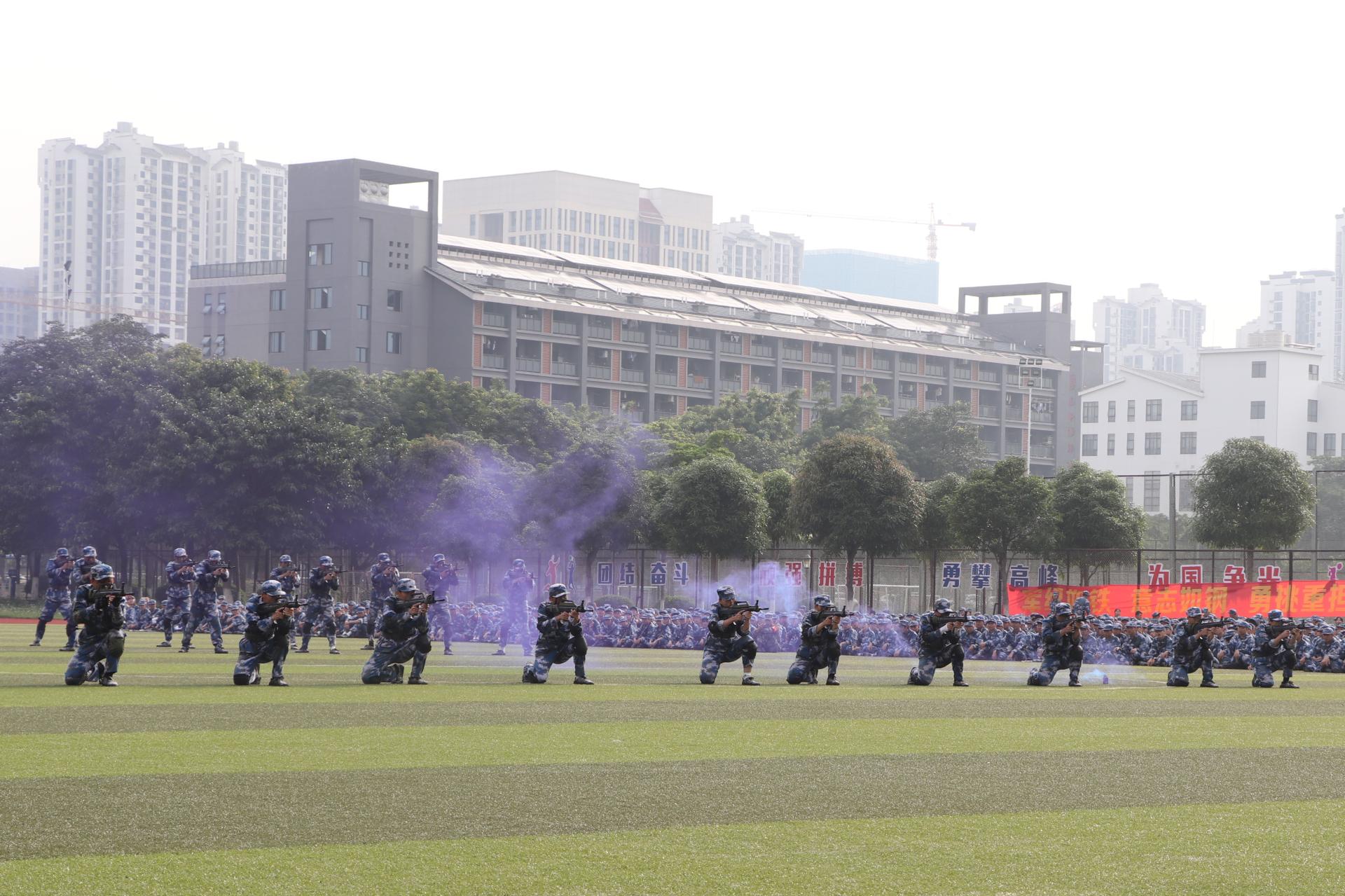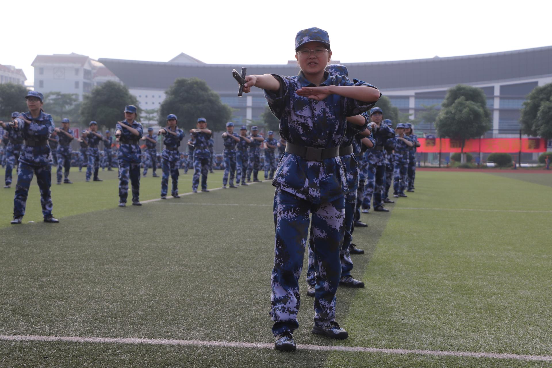 大会分为九项议程,首先全体人员进行升国旗、奏唱国歌和升校旗、奏唱校歌。紧接着主持人介绍出席大会的领导和嘉宾。随后,同学们迈着铿锵有力的步伐、喊着整齐的口号接受了领导们的集体检阅。紧接着,军训学员们进行了分列式和军训主题表演,阳刚的军体棍,灵活的匕首操,展现了震撼的视觉盛宴。激动人心的表演结束后,覃存民副书记对军训表演进行点评,并宣读表彰决定,领导为先进集体及个人颁奖。完成颁奖仪式后,军训学生代表石梓萌总结了同学们军训生活以来的付出,表示因军训形成了爱国热情、严于律己的组织观念和艰苦奋斗的作风精神,倡导同学们践行“请党放心,强国有我”的时代宣言。紧接着刘彪书记与承办单位领导覃红星也对军训进行了点评与总结,并肯定了同学们的军训成果,他们勉励同学们将军训生活的优良作风继续发扬在以后的学习生活上,做时代长征的接班人,为实现中华民族伟大复兴奋斗。最后,21级新生们按军训各营与领导进行合影留念。