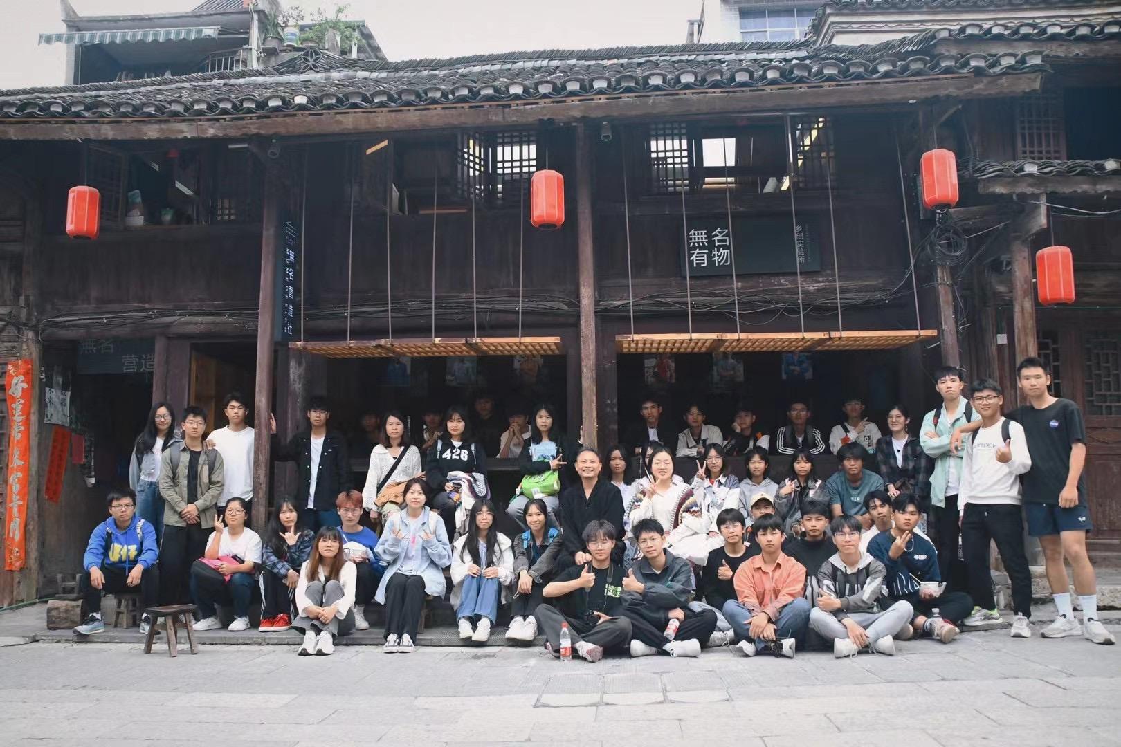 图1:南宁学院建筑学师生与無名营造社创始人在工作室前合影留言