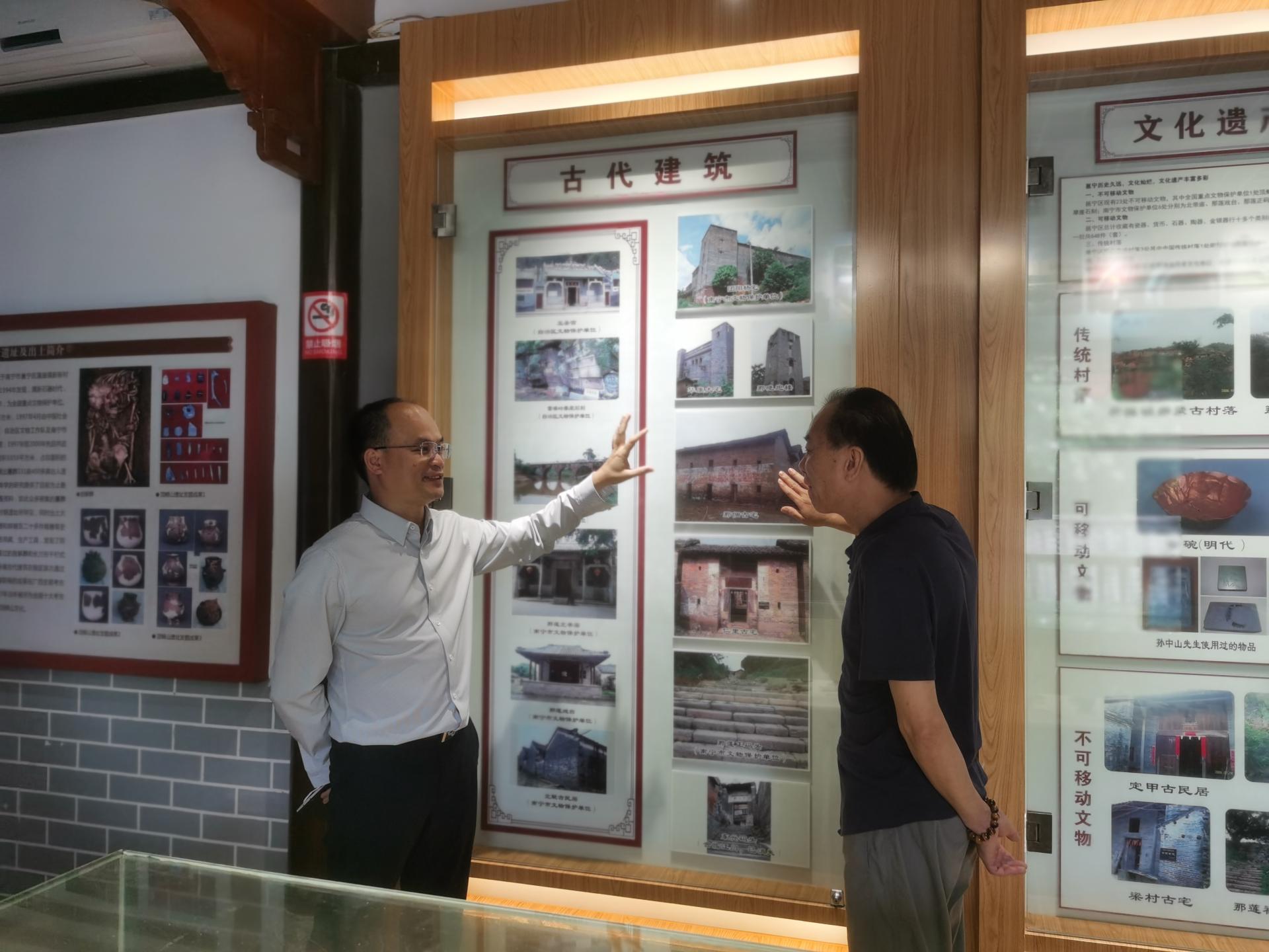 刘所长对土建学院各位领导老师的到来表示诚挚的欢迎,土建学院考察团在刘所长的带领下,首先参观位于文管所二楼的邕宁文物展。该展览囊括邕宁区历史文化街区、历史建筑风貌、红色遗迹、文化遗产保护成果、非物质文化遗产保护成果、文创产品等,在刘所长的亲自介绍下,一行人饶有兴致的观看展板介绍和实物展陈,并不时发问,全面了解地方文化资源,领略邕宁区的前世今生。在参观过程中,沈副院长充分肯定邕宁区文管所在文化遗产保护和宣教方面所做的贡献,希望通过高校与文物管理部门的合作,使学生切身感受历史建筑的魅力,打造别开生面的“第二课堂”,这将有助于传承优秀传统文化,践行应用型人才培养理念。沈副院长强调,高校课程思政意义重大、形式多样,未来可在邕宁区文管所的协助下,筹划邕宁区红色遗迹研学线路,并结合建筑测绘、中国建筑史等相关课程,让学生在掌握专业技能的同时,充分感悟革命先烈的奋斗精神。