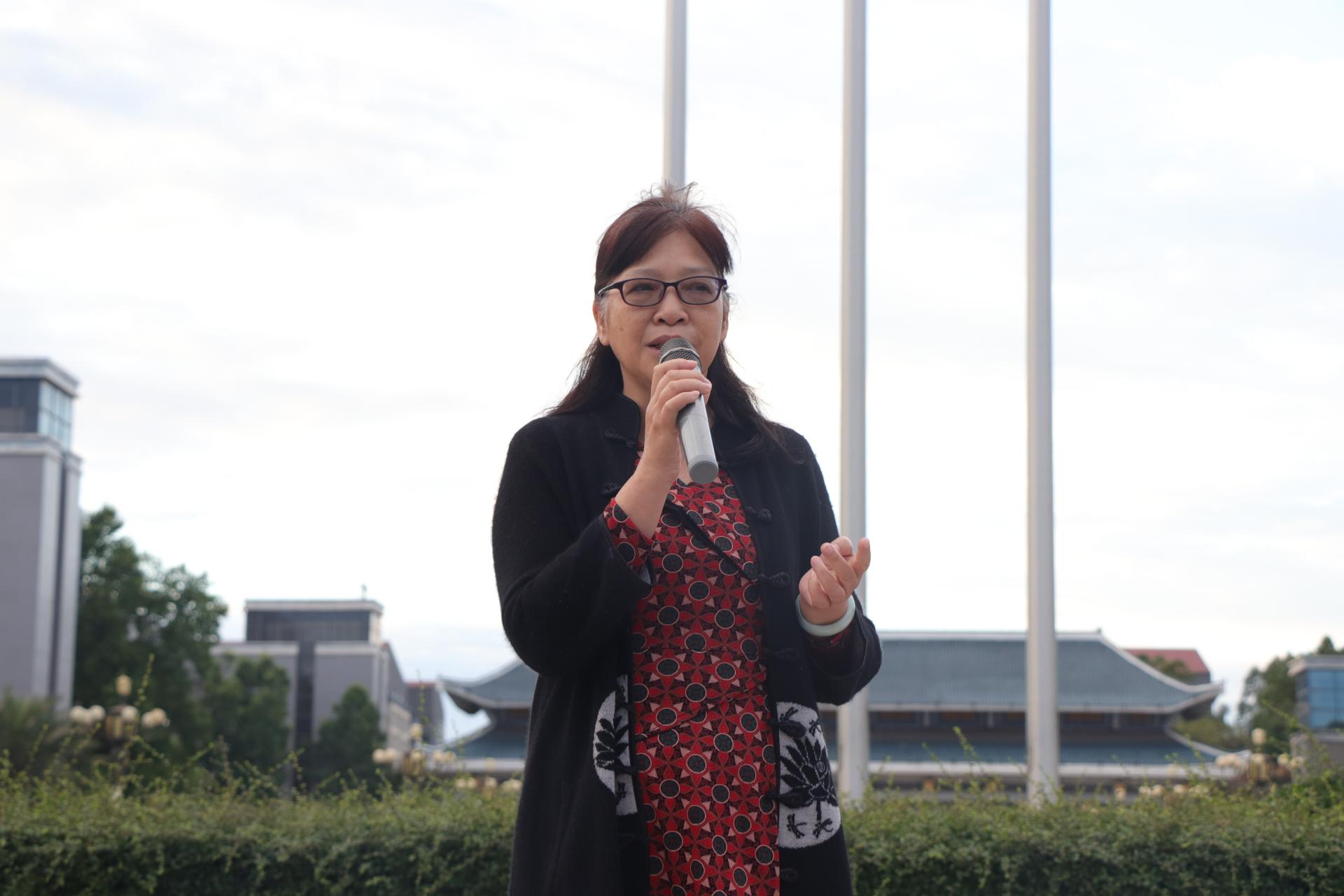 紧接着,陆海兰副院长在国旗下讲话,她表示,土建学院无论是文体活动还是专业竞赛,抑或是中国“互联网+”大学生创新创业比赛上都获得了很好的成绩,特别强调了学校不仅是学生们梦想起飞的地方,土建学子不应该局限于学校内,更应该走出校门,走出广西,成为更好的自己。同时,陆海兰老师希望土建学院能在即将到来的校运会中斩获荣耀的三连冠。最后,院学生会主席黄伟荣同学在国旗下讲话,他表示校运会取得的成就离不开学院师生的努力和坚持,并与全体同学一起喊口号加油鼓劲,随着黄伟荣同学讲话完毕,本次升旗圆满结束。