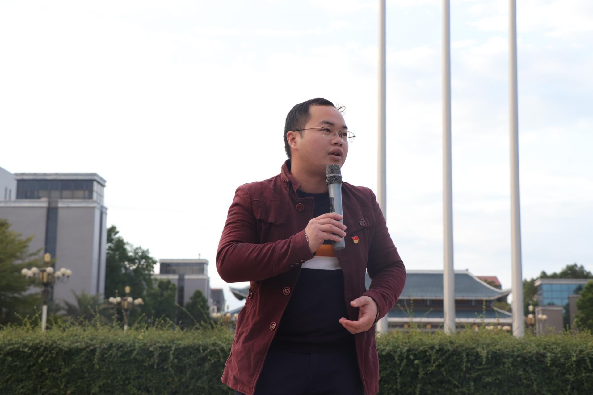 升旗仪式开始,国旗护卫队迈着坚定而有力的步伐将国旗和校旗护送进场。随着《义勇军进行曲》铿锵有力的节奏在广场响起,鲜艳的五星红旗缓缓升起直至飘扬于南宁学院上空。随后,南宁学院校旗也在五星红旗两侧伴着校歌《锦绣前程,充满阳光》轻快的旋律徐徐上升。接着,由学生代表2019级工程造价4班的朱菊芬同学在国旗下讲话,她以14岁的奥运冠军全红婵、莆田学院的320名学生驰援仙游为例,讲述他们是如何以自己的行动展现了属于00后的担当。朱菊芬同学呼吁,作为一名普通的学生,同学们可以从身边的小事开始,爱护环境、关心同学以此展现自己的担当。
