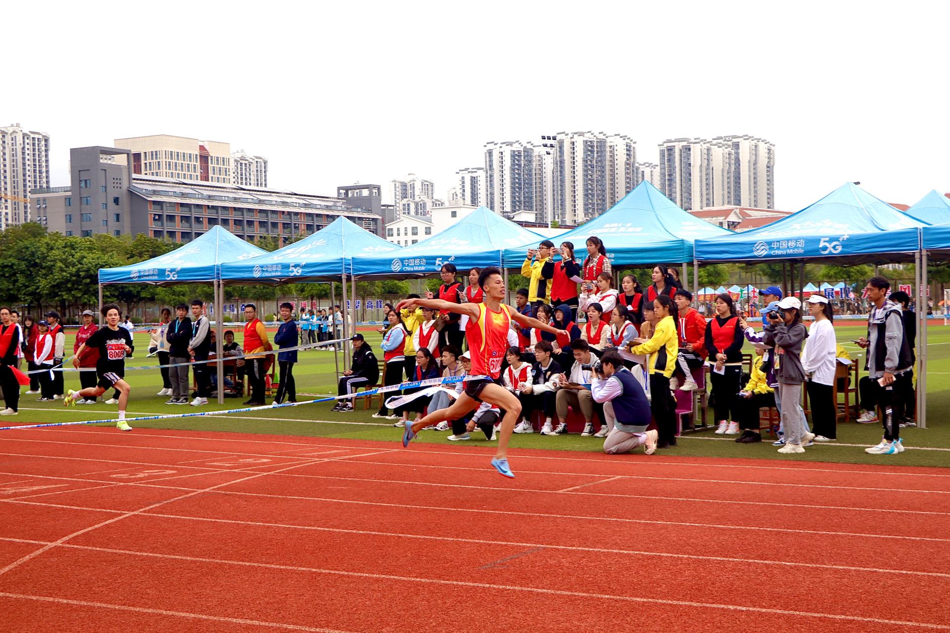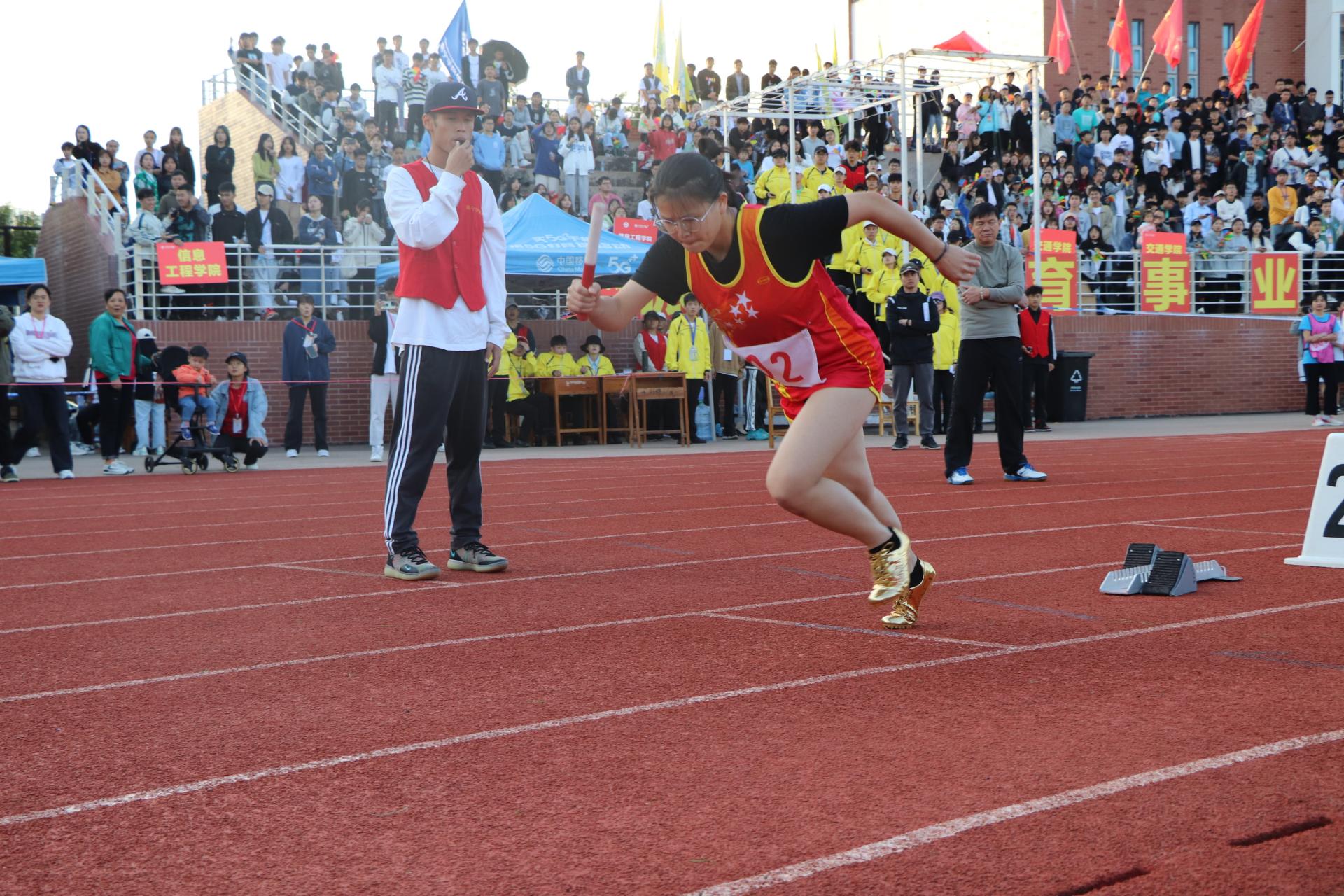 本届校运会共设立了100米跑、4×400米跑、1500米跑、跳高、跳远等多个比赛项目。比赛开始,学院田径比赛的运动员们如离弦的箭一般飞驰而过,他们健步如飞,你追我赶,尽管精疲力尽、满头大汗,可谁也不甘落后,拼尽全力的往前冲;跳高比赛则在一声声喝彩中横栏升到了新的高度,运动员们撩开大步,用力起跳,身体腾空跃起,如鱼儿跃起般优美的掠过横栏;跳远比赛的运动员们随着裁判员挥下红旗,弓着腰,目视前方,猛一用力,迈开大步,速度越来越快,跃起腾空,跳出了新的距离。观众席的同学们加油呐喊声、鼓掌声此起彼伏、络绎不绝,锣鼓声有时如骤雨一般急促,有时像惊雷般响彻天空、排山倒海,我院运动健儿们在赛场上拼尽全力,同学们在观众席上呐喊助威,工作人员在自己的工作岗位上发光发热,为比赛的顺利进行奉献自己的一份力量,充分展现了土建学子奋勇争先、顽强拼搏,永不言弃,团结协作的精神风貌。其中在4×400米赛中男子组荣获第一名,4×400米赛中女子组荣获第一名,凌艳芝同学荣获女子100米栏和女子400米栏第一名,谢卓伶同学荣获女子跳远第一名,林妍霞同学荣获女子三级跳远第一名,李清同学荣获女子800米和女子1500米第一名,朱菊芬同学荣获女子200米第一名,罗哲华同学荣获男子三级跳远和男子跳远第一名,陶杨同学荣获男子800米第一名。