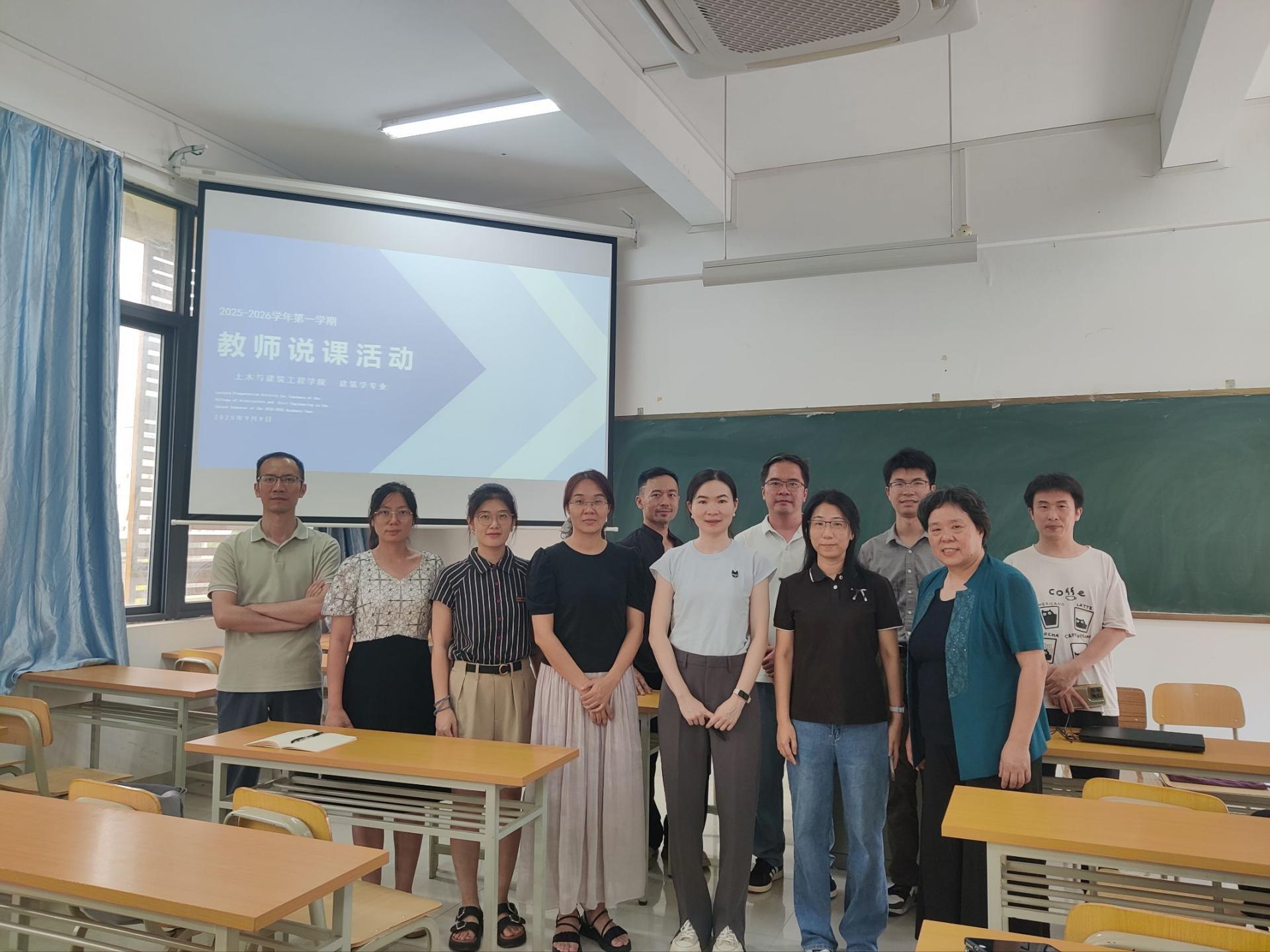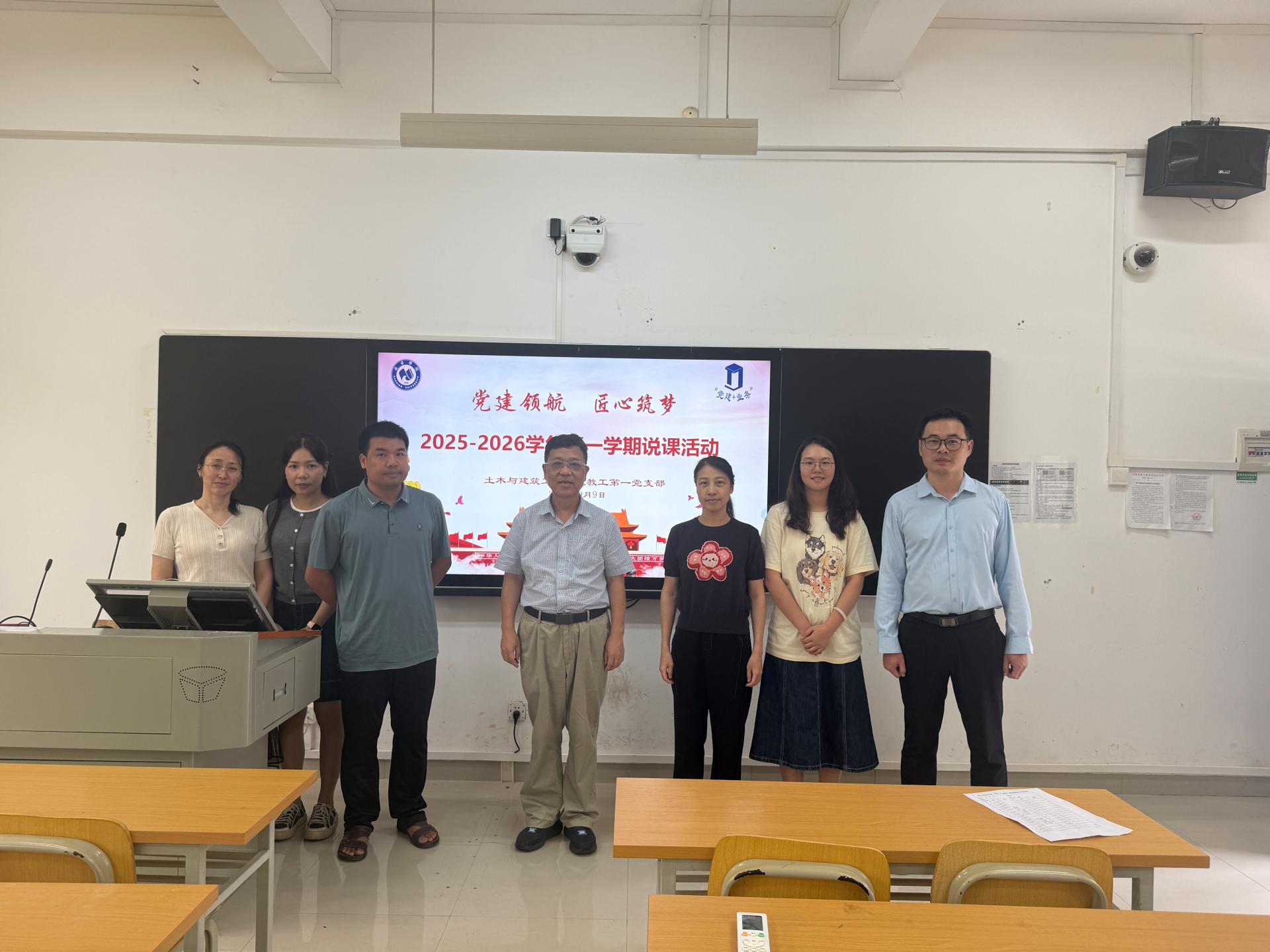 为深化课堂教学改革,落实OBE理念,提升教学课堂质量与教师教学能力,在组织全体教师深入学习校级说课活动标准与要求、明确实施细则后,土木与建筑工程学院于2025年9月9日下午以“教研室+课程群”为单位,在敷文园F栋开展2025-2026学年第一学期教师说课活动。