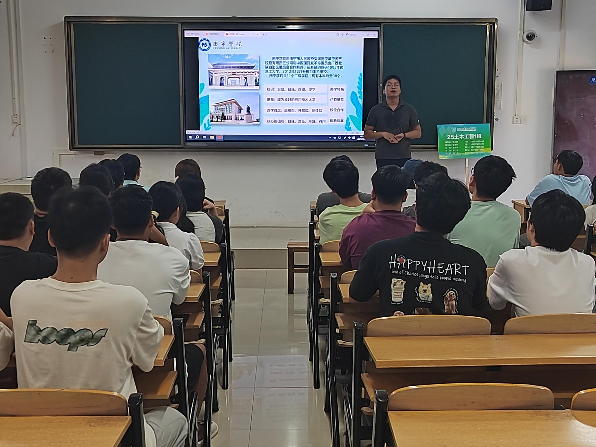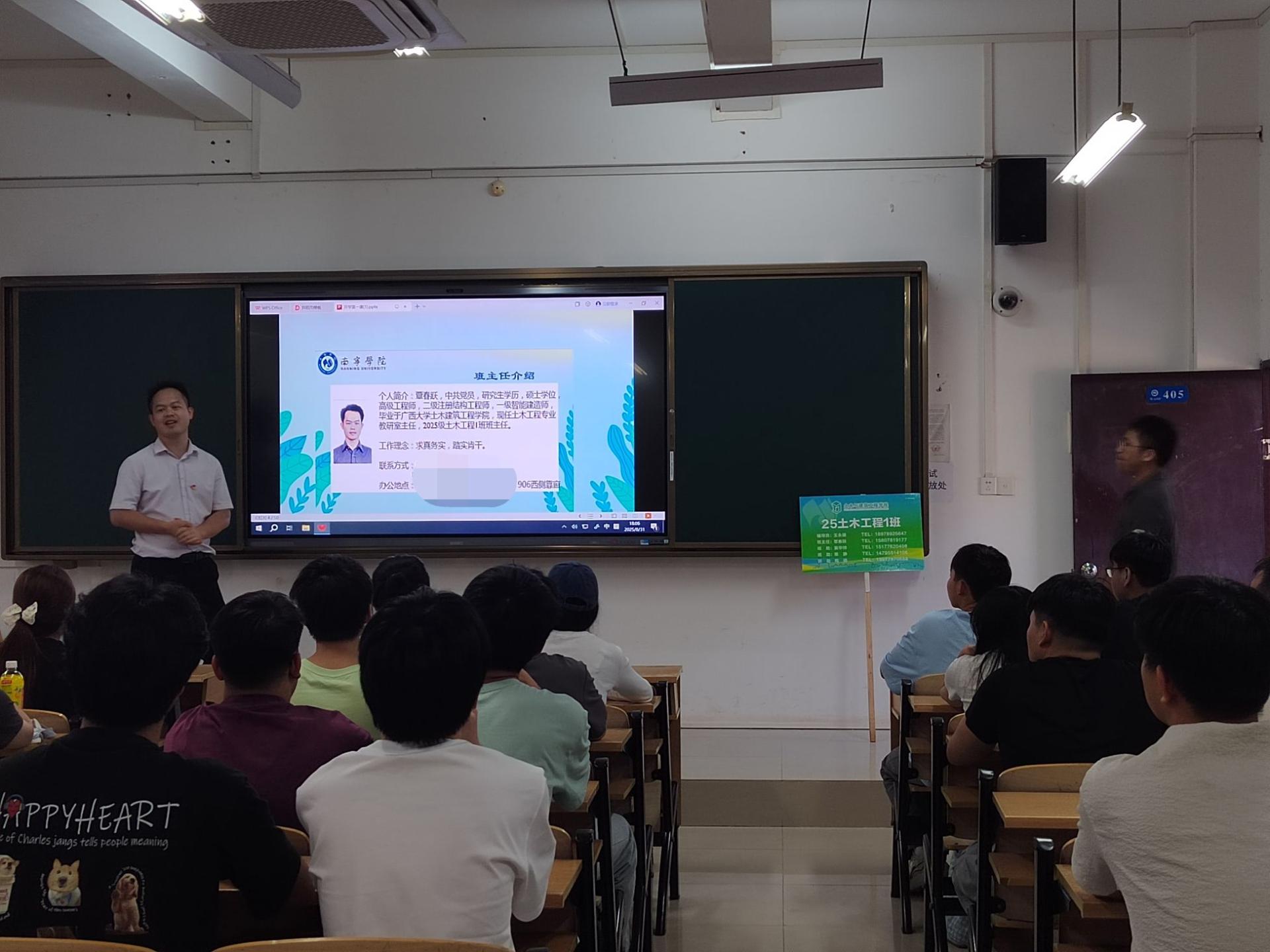 不孤湖畔的晚风拂过崭新的校园,带着对未来的憧憬与期许,2025级土木与建筑工程学院新生的大学序幕正式拉开。为帮助2025级新生快速适应大学生活,筑牢安全防线,厚植学院土梁匠家精神文化内涵。8月31日晚,土木与建筑工程学院在敷文园F楼栋1-3楼,同步组织开展2025级新生“开学第一课”主题教育班会,三师一员队伍齐亮相,以精准化、全覆盖的内容,为新生扣好大学“第一粒扣子”。