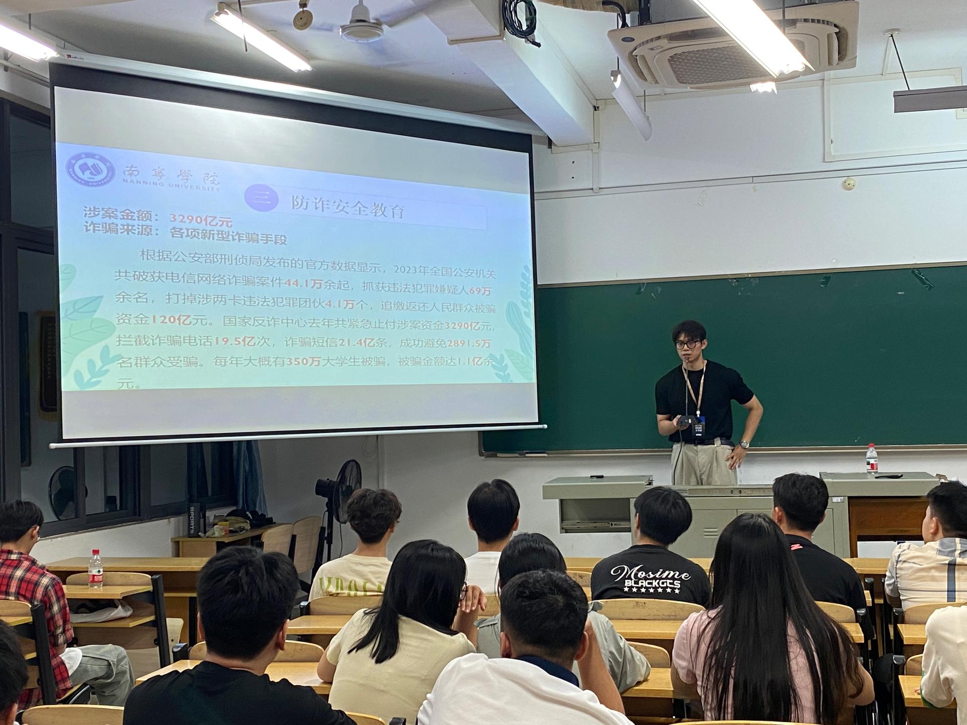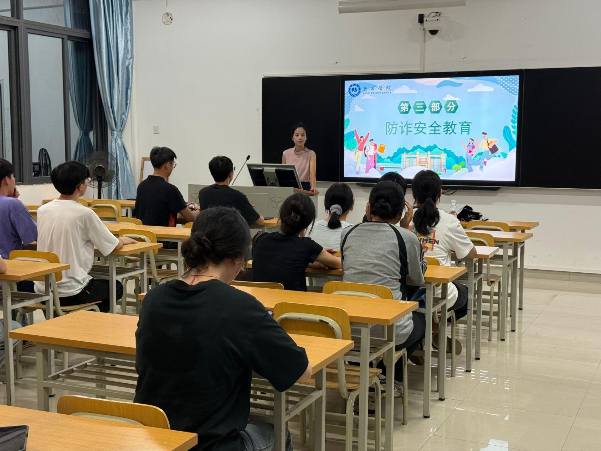 本次主题班会围绕“规则引领、文化浸润、安全护航”三大内容展开,各班级班主任和专兼职辅导员结合班级实际,灵活调整讲解重点,确保内容“接地气、有实效”。在学院文化环节,班主任通过播放学院招生宣传视频、介绍学科特色与师资力量、分享优秀校友事迹,让新生深入了解学院的办学成果,激发其专业认同感与归属感,树立专业自信和行业自信。 防诈骗教育是本次班会的重点内容之一。班主任结合近期高校高发的“虚假兼职”“校园贷”“冒充电商客服退款”等诈骗案例,通过PPT展示、视频播放等形式,详细讲解诈骗分子的作案手段与识别技巧,提醒新生警惕陌生链接、保护个人信息、谨慎转账汇款。同时,现场引导新生下载“国家反诈中心”APP,切实增强自我防范意识,筑牢财产安全“防火墙”。在规章制度学习环节,各班专兼职辅导员围绕《学生手册》中的考勤管理、课程考核、奖助贷政策、宿舍安全、违纪处分等内容,结合学院具体要求逐条解读,重点强调了课堂纪律、实验安全、宿舍用电规范等注意事项。