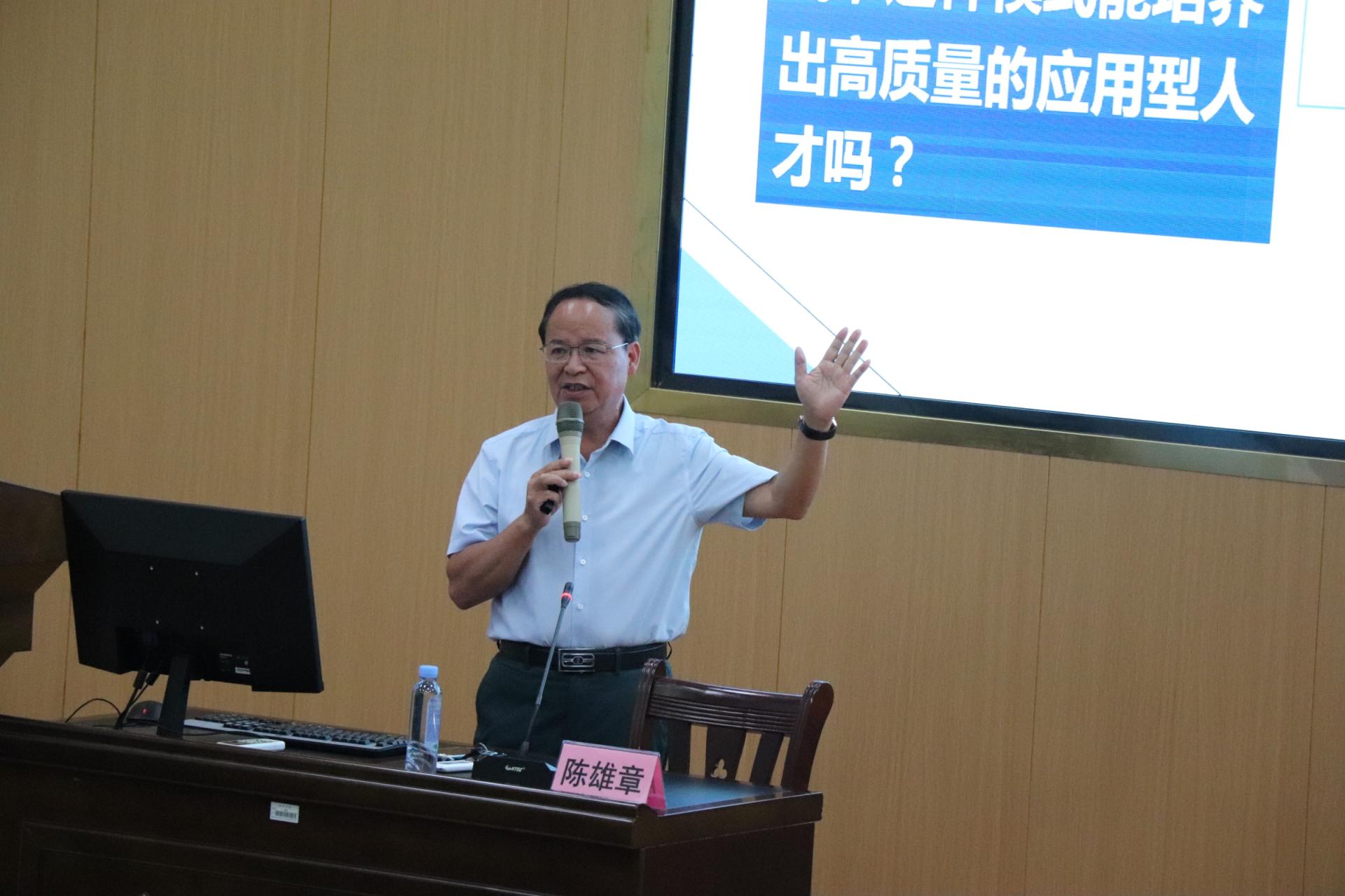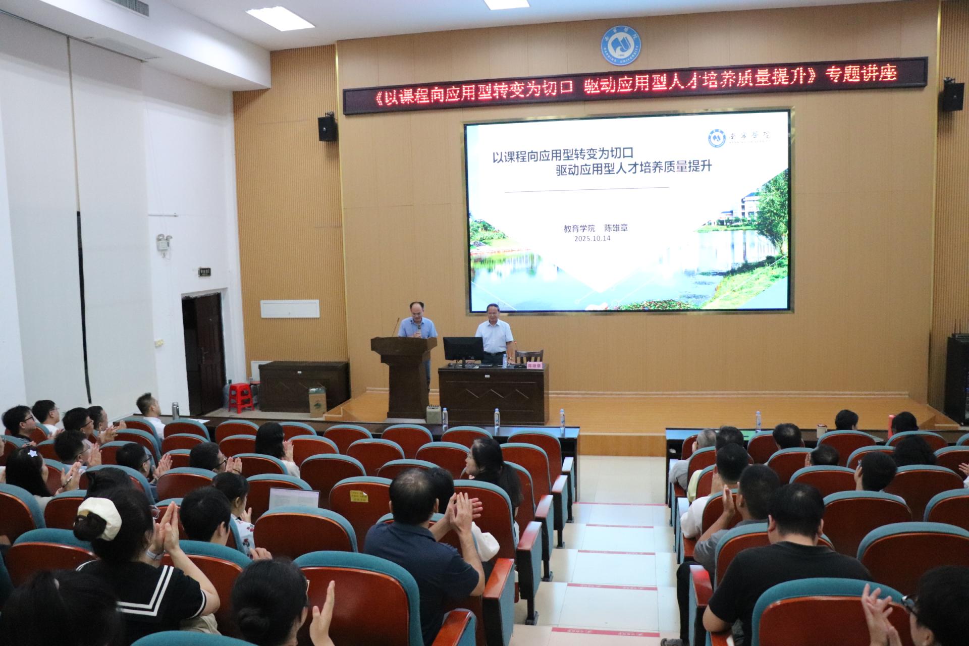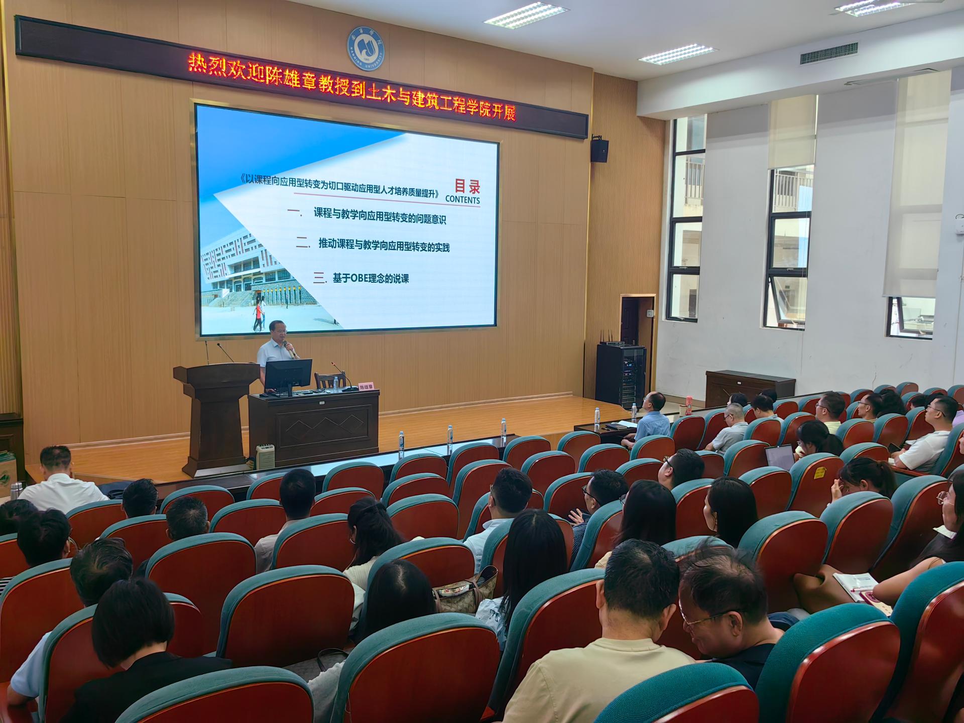 为深入推进课程与教学向应用型转变,2025年10月14日下午,土木与建筑工程学院特邀南宁学院陈雄章教授,在南硅谷D104报告厅开展题为《以课程向应用型转变为切口 驱动应用型人才培养质量提升》的专题讲座。讲座由学院党委书记、执行院长沈建增教授主持,学院领导及全体教师参加。