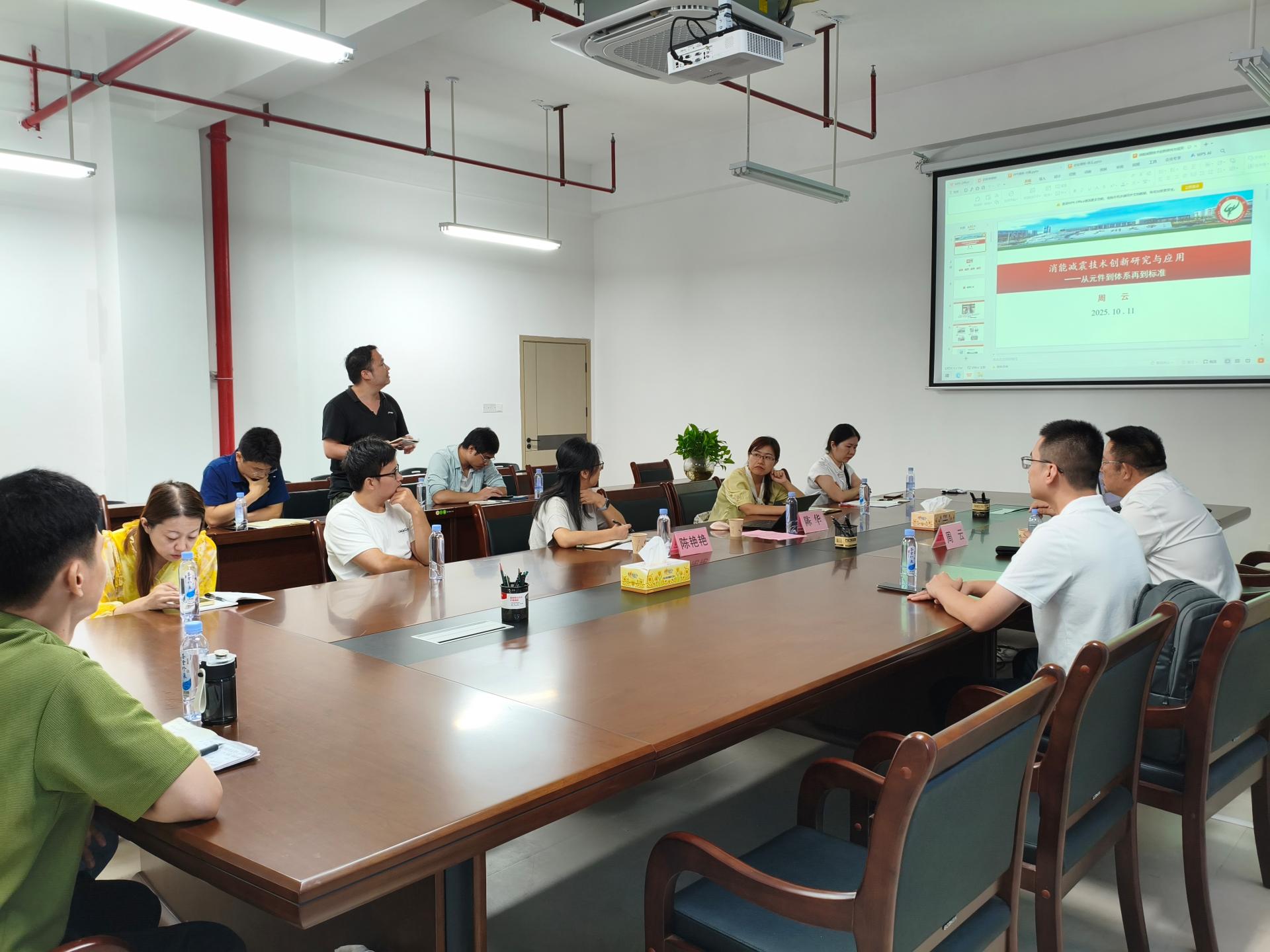 2025年10月15日上午,南宁学院土木与建筑工程学院成功举办“消能减震技术创新研究与应用”专题讲座,特邀广州大学周云教授担任主讲。讲座由学院分管科研工作的陈艳艳副院长主持,陈华副院长和青年博士教师参会,旨在进一步拓展青年博士的科研视野,帮助提升土木水利硕士培育点科研能力与学科建设水平。