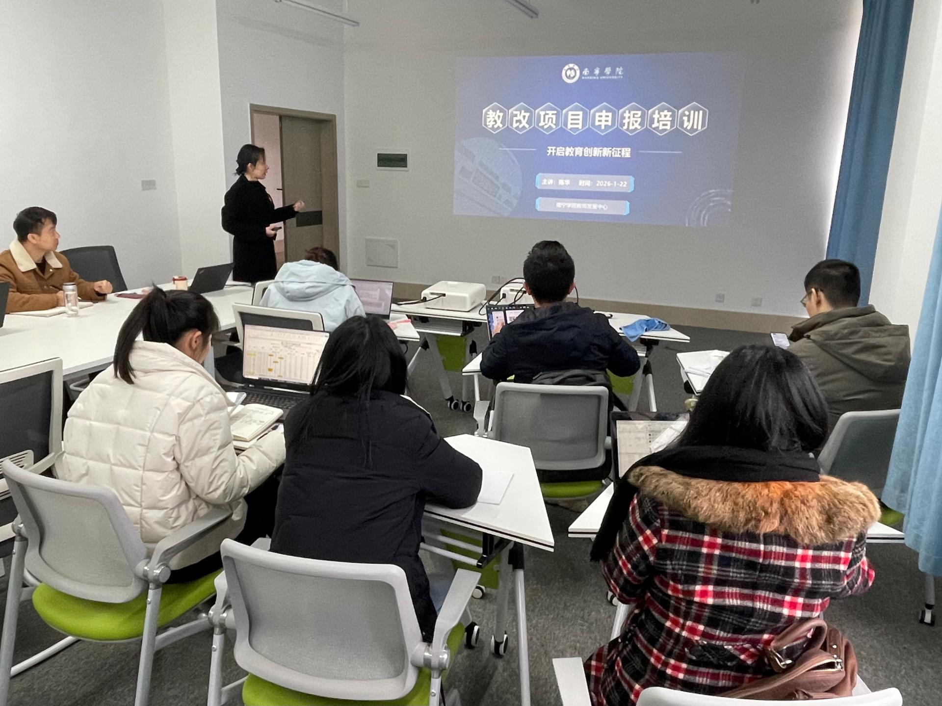 为做好2026年度教育教学改革研究项目申报工作,提升项目申报质量与水平,1月22日上午,土木与建筑工程学院工程造价教研室在东盟楼A1017教师发展工作室举办了教育教学改革项目申报专题培训会。教研室特邀请学院副院长陈华教授做专题指导。
