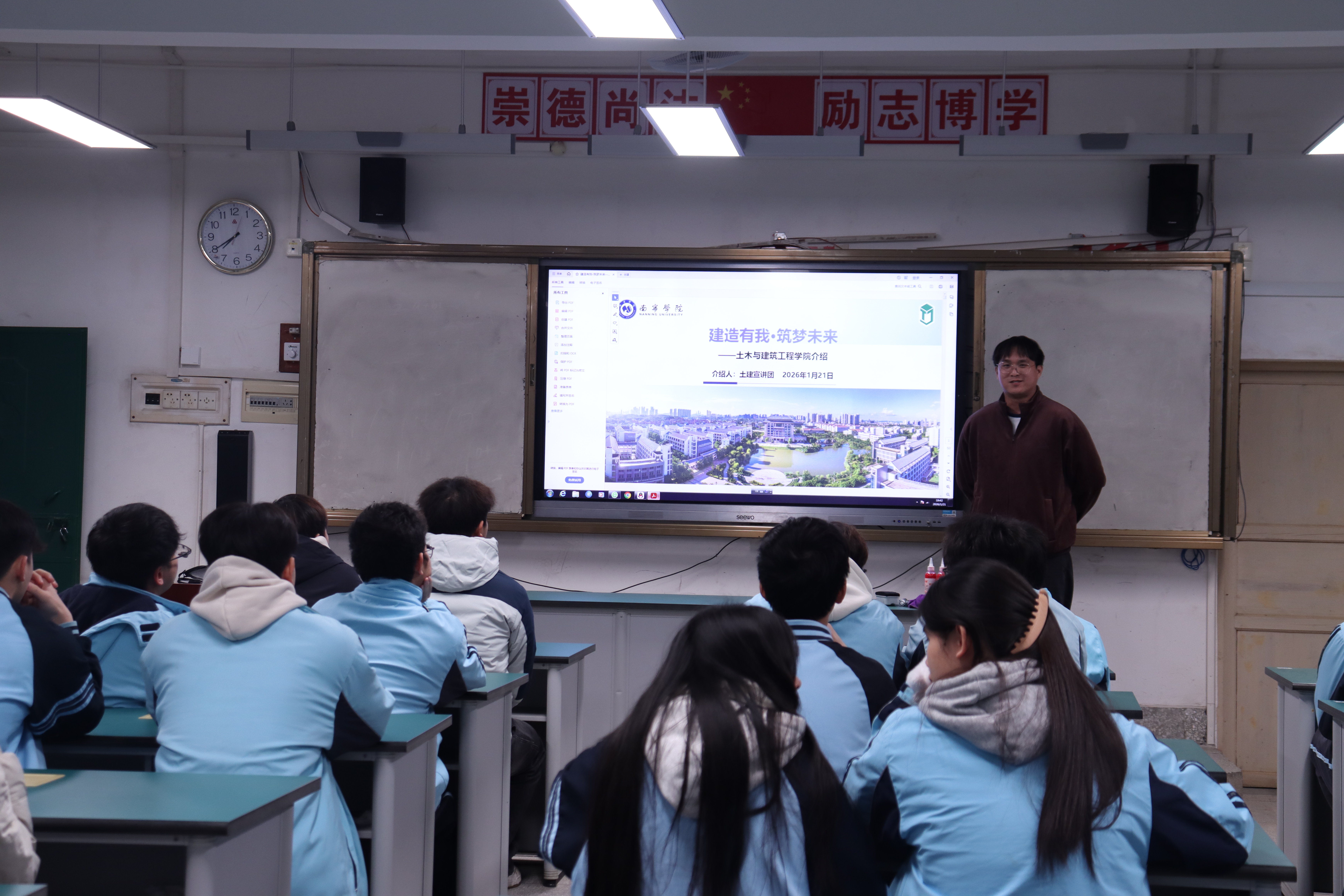 为加强校际互动交流,搭建优质教育资源共享平台,精准做好招生宣传工作,帮助高中学子明晰升学方向、深入了解高校专业特色,科学规划学业与人生发展。2026年1月21日-1月22日,土木与建筑工程学院学生科负责人张易申老师、院团委书记雷佳华老师、辅导员李嘉欣老师带领4名优秀学子代表组成宣讲团,赴南宁市第二十一中学、南宁市第十三中学、南宁市爱华学校开展寒假招生宣传走访活动。活动以政策解读、专业宣讲、经验分享、互动问答等多元形式展开,兼具教育性、公益性与实践性,为即将面临升学选择的高中学子送去了干货满满的成长指引。