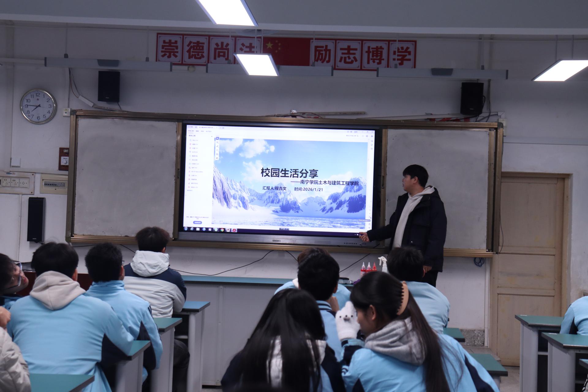 此次寒假招生宣讲活动,既是学院拓宽招生渠道、扩大办学影响力的重要举措,也为高中学子搭建了直面高校、了解专业的便捷桥梁,更让参与宣讲的师生在实践中收获成长。对于学院优秀学子代表而言,这既是锻炼表达能力、提升综合素养的实践契机,更是以己之力宣传学校、传递温暖的责任担当。“能回到高中校园,为学弟学妹们讲述校园故事,分享成长经验,不仅让大家更了解我们学校和学院,也让我更坚定了自身的学业规划,倍感意义非凡。”学子代表程垚文说道。