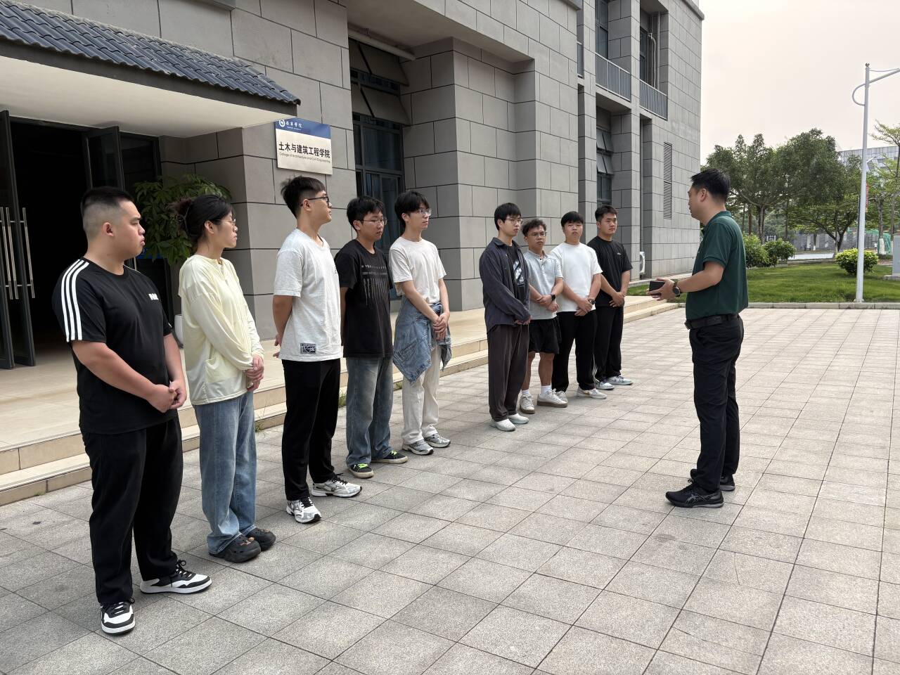 2026年4月15日上午,土木与建筑工程学院第五批定向班学子整装待发,背着行囊、带着期许,在学院楼下集结,向着上海电气研砼(木垒)建筑科技有限公司的工作岗位奔赴而去。学院党委副书记严子翔、学生科辅导员雷佳华、刘奕鹏、张洁明老师亲临现场,为学子们送别鼓劲,传递牵挂与嘱托。