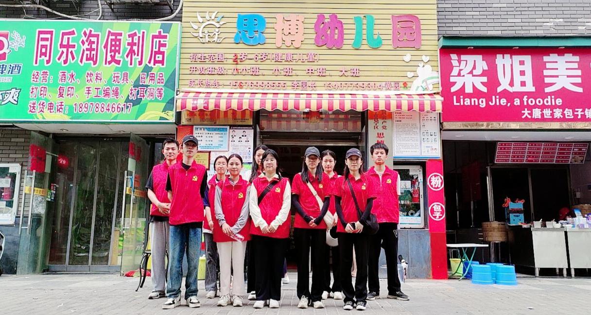 党支部志愿者完成志愿服务后在思博幼儿园门合影留念