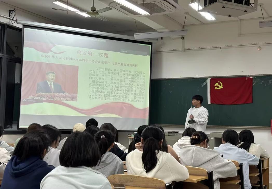 活动第一议题是学习习近平总书记在庆祝中华人民共和国成立76周年招待会上的重要讲话精神,集中回顾新中国成立以来的辉煌成就,凝聚奋进力量。会上,支部党员畅谈思想认知,分享学习体会,深刻领会中华民族从濒临危亡到走向伟大复兴进程中,党和人民同舟共济、接力奋斗的精神伟力。作为青年党员,要认真学习领会党的先进理论知识,切实关注时事政治,紧紧围绕党的中心任务,锤炼本领,未来在“十五五”规划的实践中贡献自己的智慧与力量。