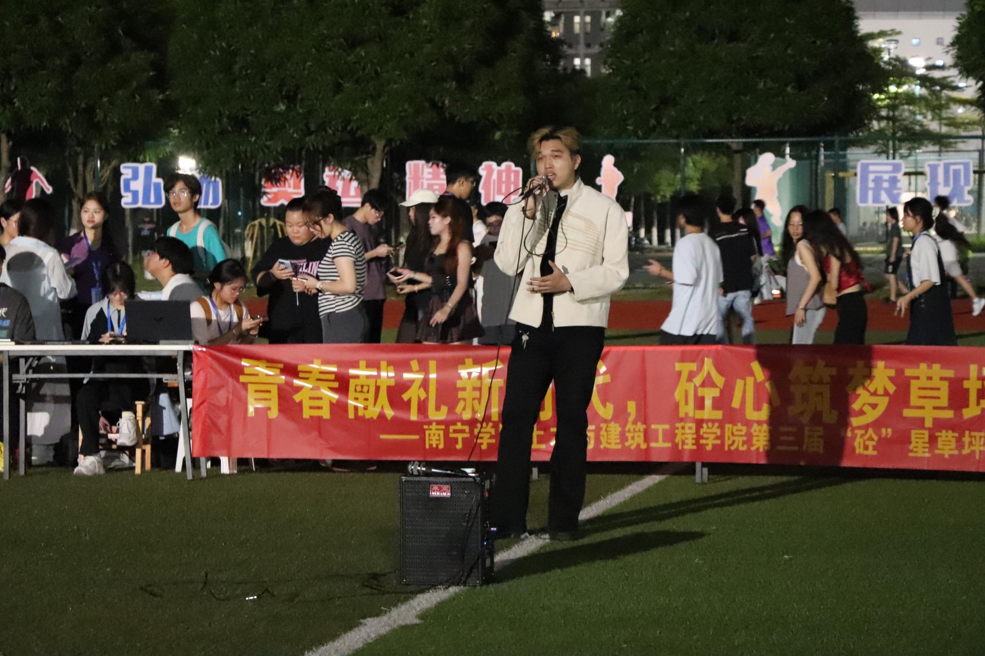 为深入践行“五育并举”教育方针,切实达成以美育人、以美化人、以美培元的育人实效,南宁学院土木与建筑工程学院立足学院专业特色,积极探索美育融合发展新路径,以“砼星”草坪音乐节等品牌活动为核心载体,持续推进校园美育品牌建设。2025年10月16日,土木与建筑工程学院第三届“砼”星草坪音乐节成功举办,400多名师生齐聚绿意盎然的草坪,在悠扬乐声与灵动舞姿中共享视听盛宴。本次活动由梅扬和王梦妃同学主持,活动赞助商“甜也”带来的节令限定惊喜更添烟火气息,现场氛围热烈高涨。