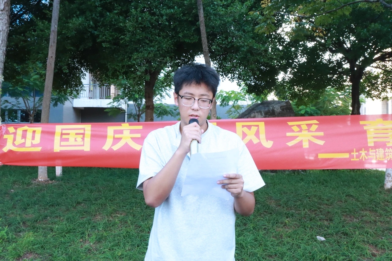 运动员代表张书恒发言,他将以“友谊第一、比赛第二”为承诺,以积极的态度参赛,遵守比赛规则,尊重对手与裁判,赛出风格、赛出水平,展现土木与建筑工程学院新生的良好风貌。并表态将全力展现竞技水平与集体荣誉感。